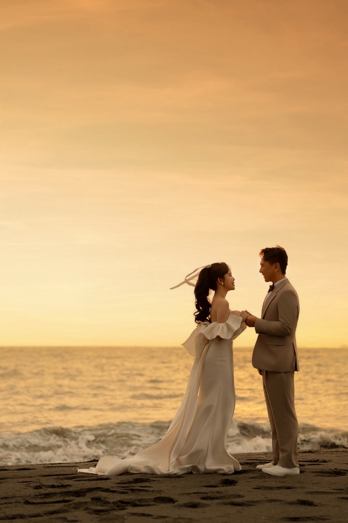 "Why don't we get married ?" You said. 那天電話裡你這樣說著,我腦袋一陣暈,這麼快的嗎?下一秒,我們就在高雄法國台北坐著當新手夫妻檔了。婚紗店辦的婚紗節其實到處都有,姐妹當初貼給我,我們也剛好有時間,服務的姐姐芷芸很仔細介紹婚紗包套內容及確認我們的需求,當我們一樓一樓參觀禮服及拍攝棚,一看到男生的西裝有超多選項,我已心動不已。重點是,高雄的拍攝內棚非常好看,外景的選項在旗津,還有他們自己專屬的外景棚,非常美! 門市服務姐姐芷芸還在拍攝當天為我們準備加油小卡跟便當,攝影師Yumi老師也在拍攝前跟我們討論,我們的需求感覺等。先生想要三生三世的感覺,禮服秘書唯嘉也陪我們挑好適合的禮服,畢竟第一次拍,要搭配就要靠專家~ 拍攝當天跟孟玉老師聊個沒完,畫出來的妝自然又能夠襯托出不一樣的我,真的好喜歡。 老師也在我們拍攝的同時一直幫我們錄影跟記錄。燈光師是可愛的Taxi,我們記憶很深刻的就是在旗津沙灘上,三月的風很大,我們根本聽不到Yumi攝影師的指令,Taxi直接跟Yumi打電話讓我們能夠隔空聽令XD. 那天你說累嗎?到最後已經回法國台北的化妝間,攝影師依舊記得我們還沒拍到的墨鏡,彩妝老師幫我們補個妝就繼續再拍。服務真的很周到!!! 三月底就馬上可以挑毛片,熙妍很有耐心陪著我們挑選入本的照片還有喜帖等~好期待六月相片全部出來~不過以下有一些可以讓我們的親朋好友欣賞一下~