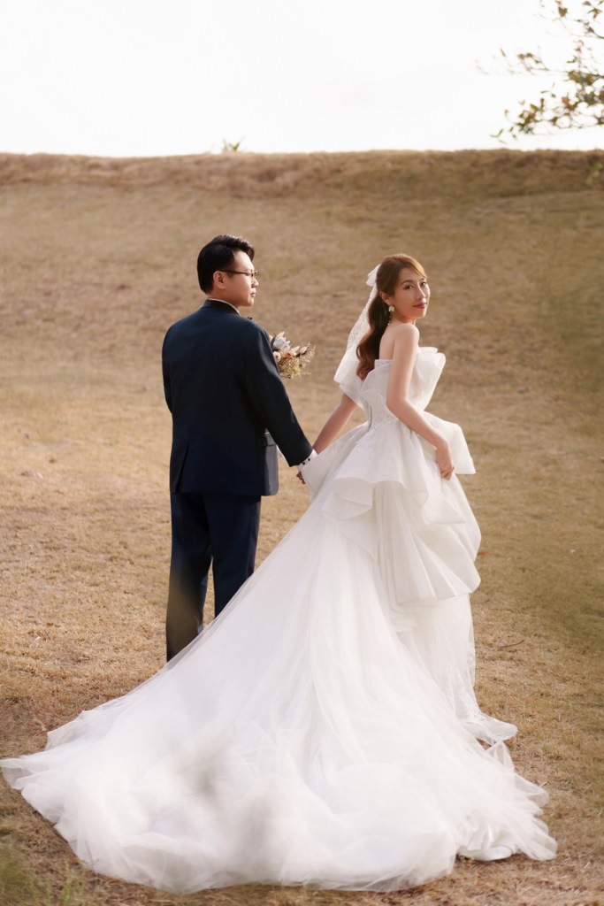 還記得在草地上被頭紗包圍的那一刻,彷彿世界只剩下我們兩個人;牽著手回頭的畫面,就像是一起走向未來的開始;而室內那張對望的瞬間,眼神裡滿滿都是彼此的溫柔。