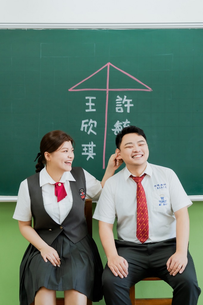 因為我們有拍制服照,綵穎老師很貼心的為我們設計當天可以配合學生造型到婚紗的妝髮~